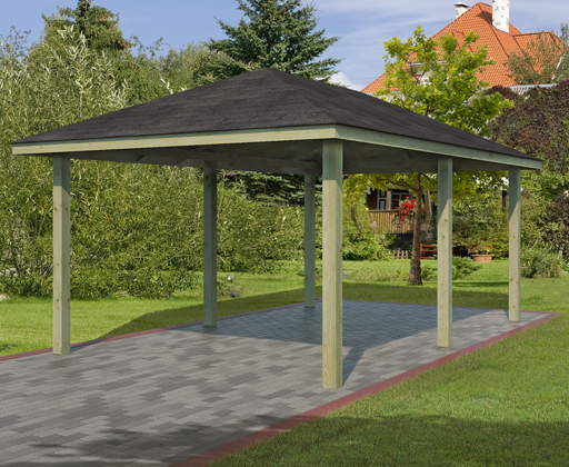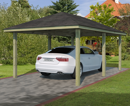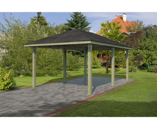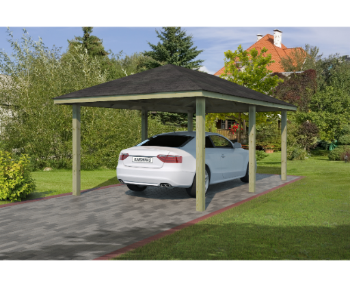 Dimensions au sol carport L x P: 352 x 538 cm Dimensions intérieures carport L x P: 290 x 569 cm Surface intérieure carport: 16,5 m² Dimensions hors tout carport L x P: 350 x 569 cm Surface hors tout carport: 19,92 m² Taille de soccle de béton minimum conseillé: 352 x 538 cm
