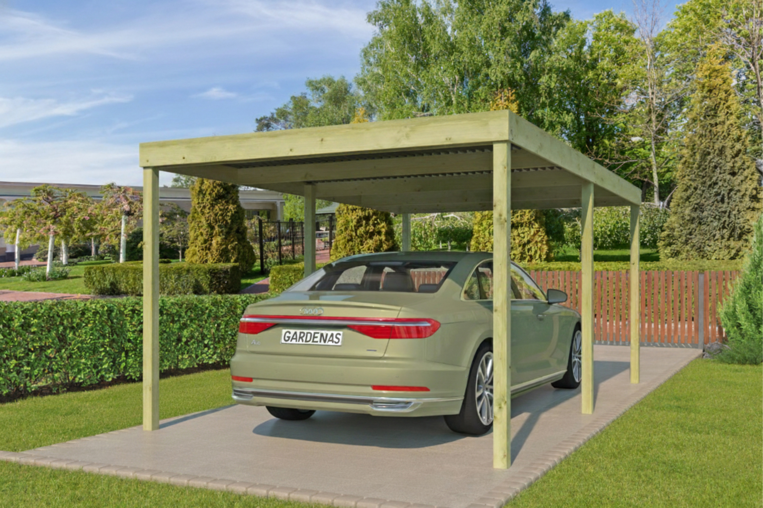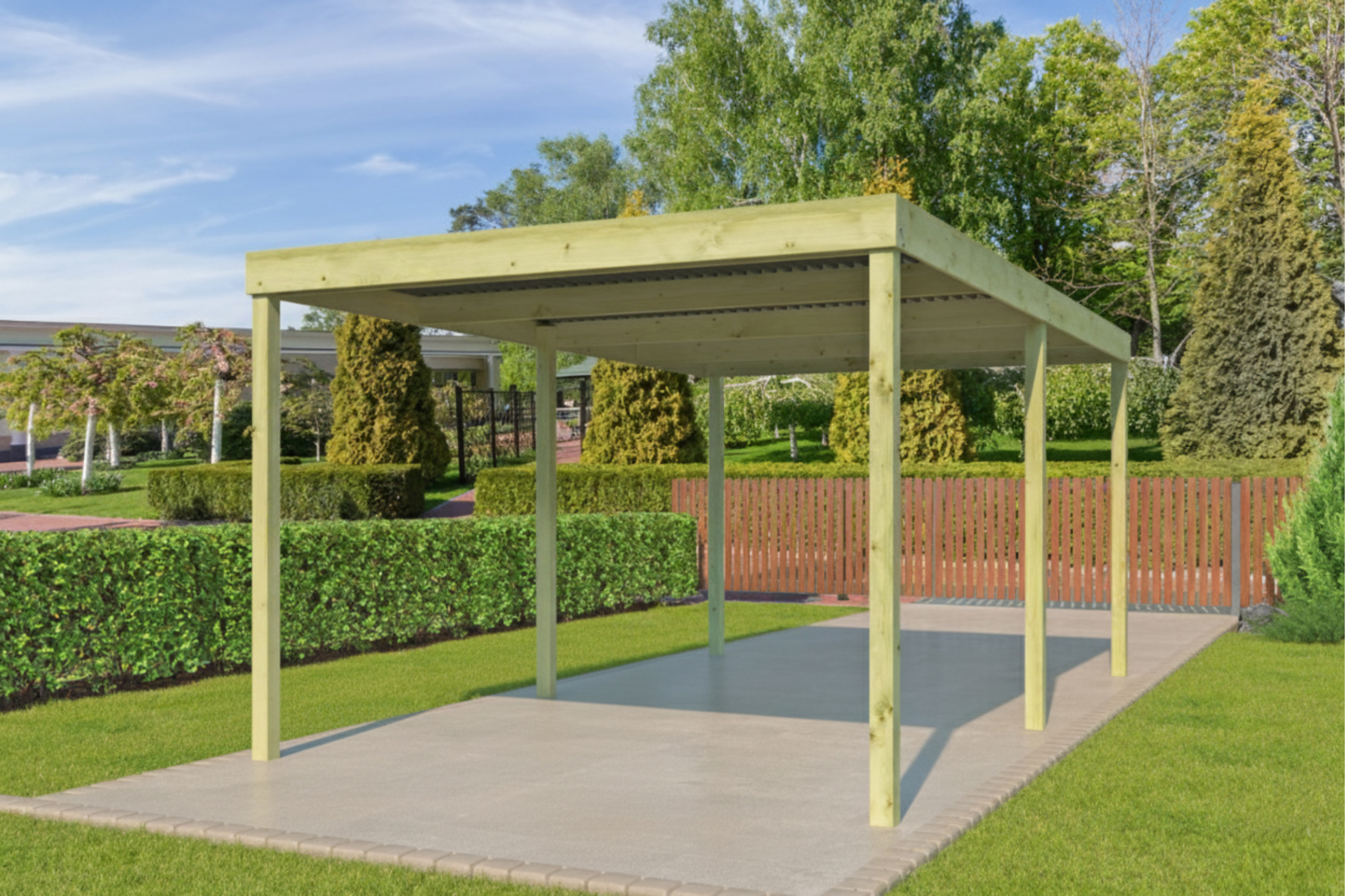 Dimensions au sol carport L x P: 298 x 495 cm Dimensions intérieures carport L x P: 280 x 502 cm Surface intérieure carport: 14,06 m² Dimensions hors tout carport L x P: 302 x 502 cm Surface hors tout carport: 15,16 m²