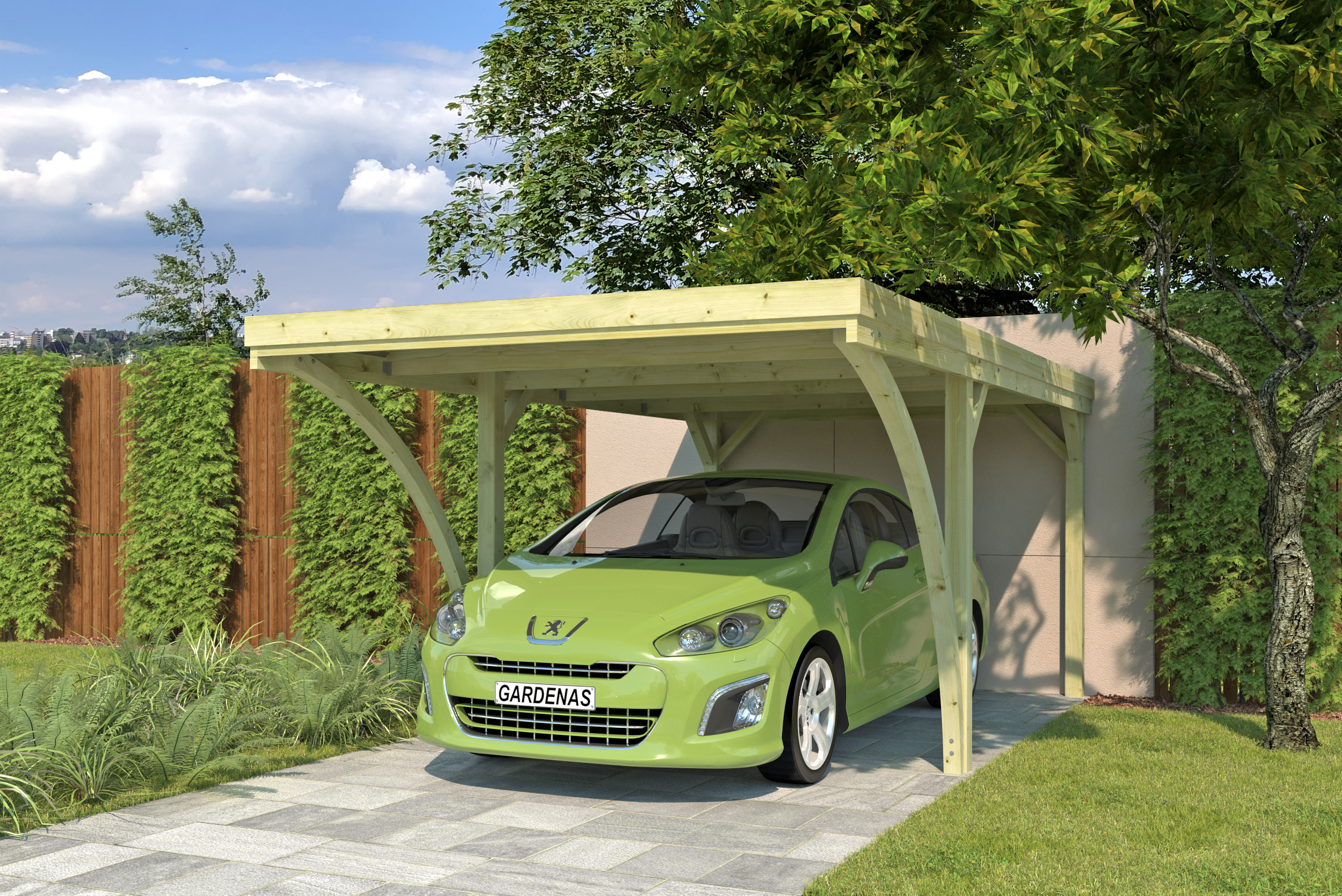 Type de construction: construction robuste en bois imprégné sous pression Traitement bois: Classe 3 : contre les insectes et le pourrissement, bois soumis à des alternances d'humidité et de sécheresse, sans contact direct avec le sol Couverture de toiture: panneaux ondulés en fibre de verre Garantie: 10 ans, voir conditions de garantie