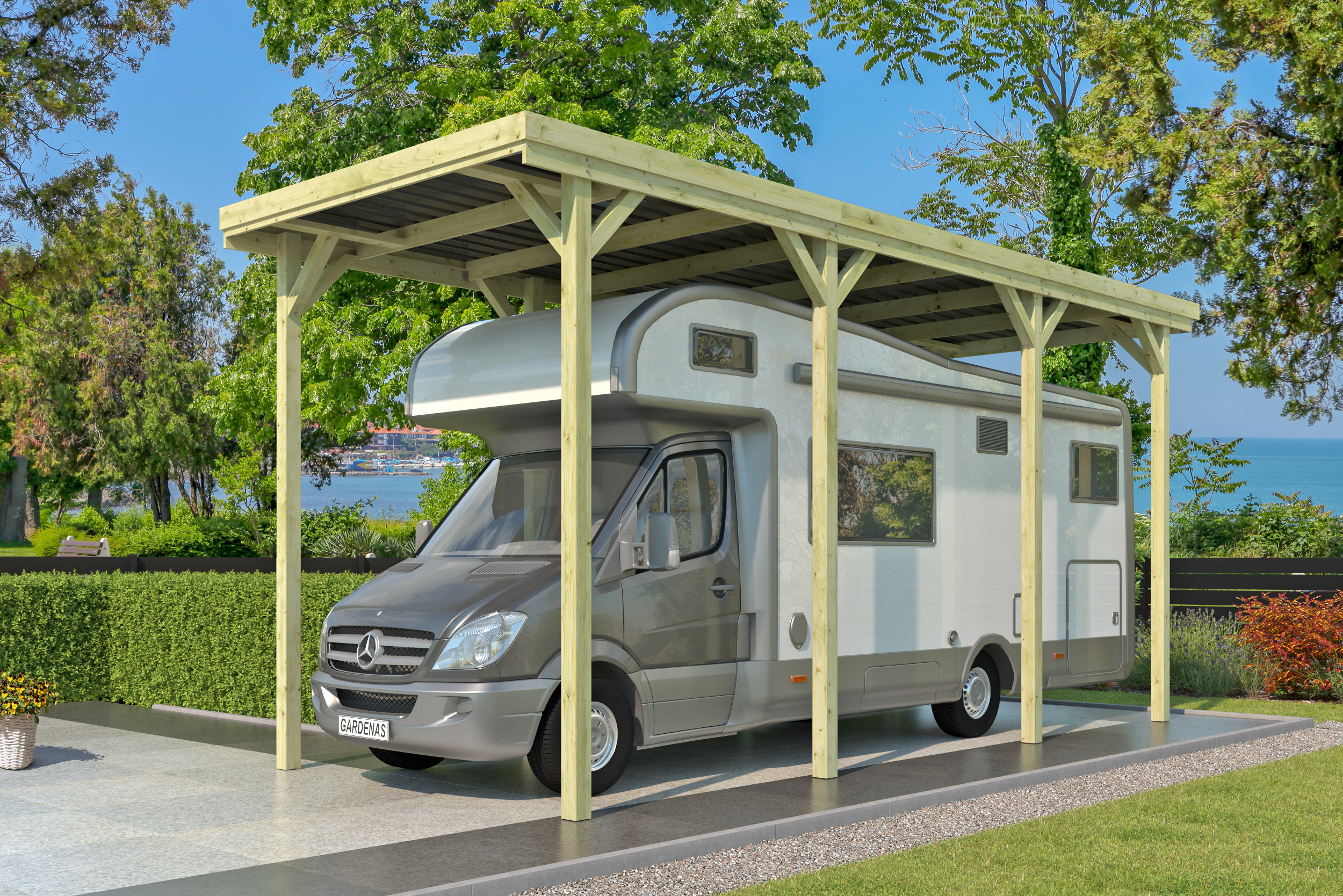 Dimensions au sol carport L x P: 298 x 708 cm Dimensions intérieures carport L x P: 274 x 797 cm Surface intérieure carport: 21,84 m² Dimensions hors tout carport L x P: 307 x 797 cm Surface hors tout carport: 24,47 m²