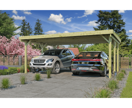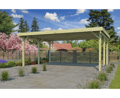 Dimension on ground carport: 576,6 x 409,1 cm Dimension inner carport: 552,6 x 501,9 cm Surface inner carport: 27,73 m² Dimension overall carport: 604,2 x 501,9 cm Surface overall carport: 30,32 m² Minimal recommended size of concrete base: 615 x 447 cm